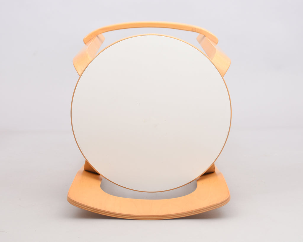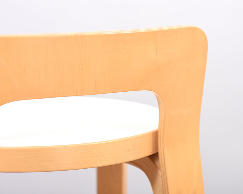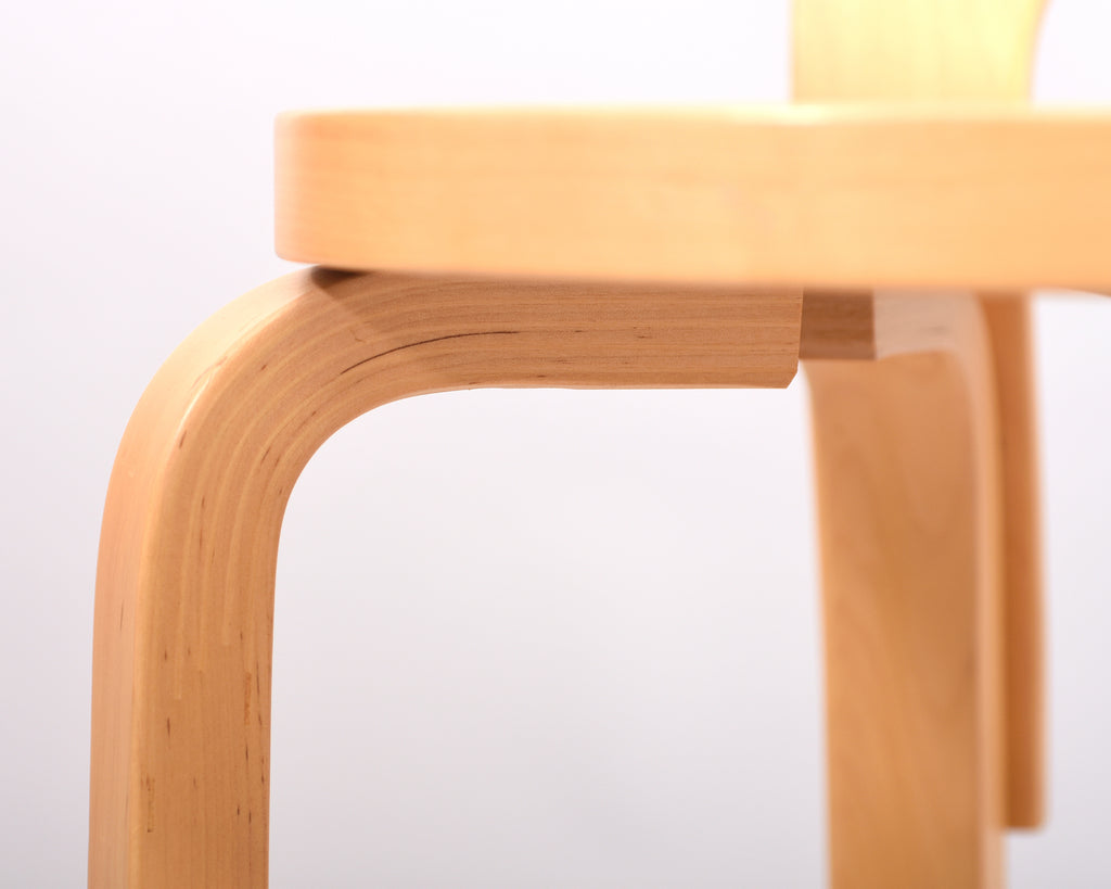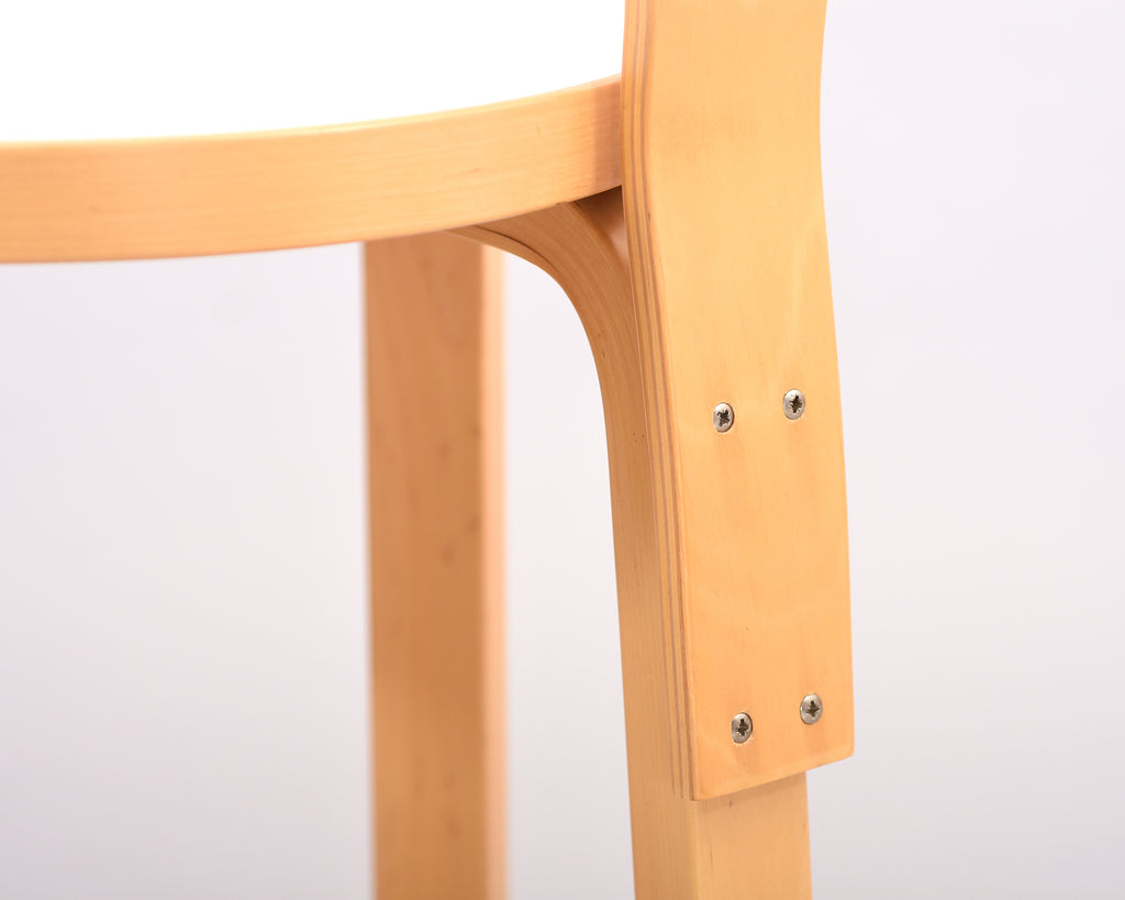 Jalat ja istuimen reunalista: massiivikoivu Istuimen ydin: massiivikoivu, koivuvaneri Istuimen pinta: koivuviilu, korkeapainelaminaatti, linoleumi Selkänoja: muotoonpuristettu koivuvaneri Jalkatuki: muotoonpuristettu koivulamelli Valmistettu Suomessa