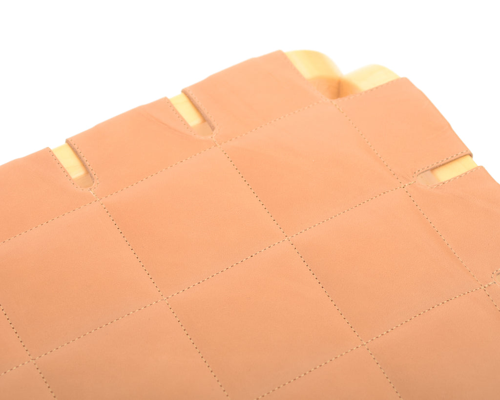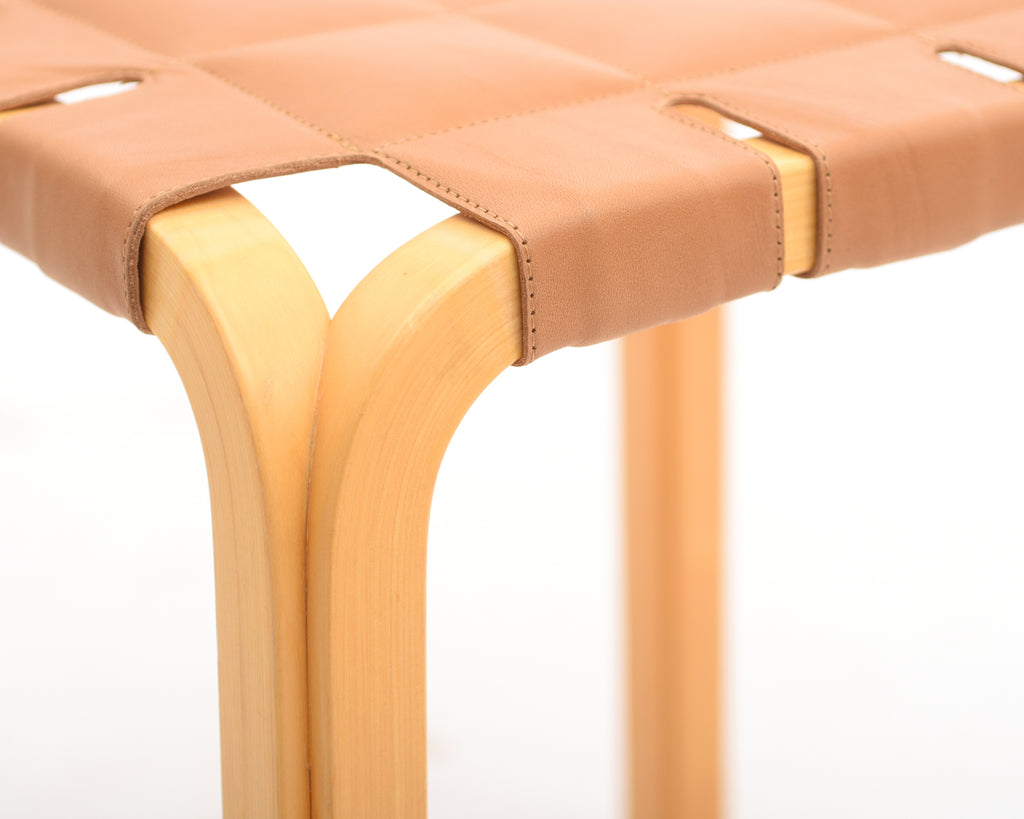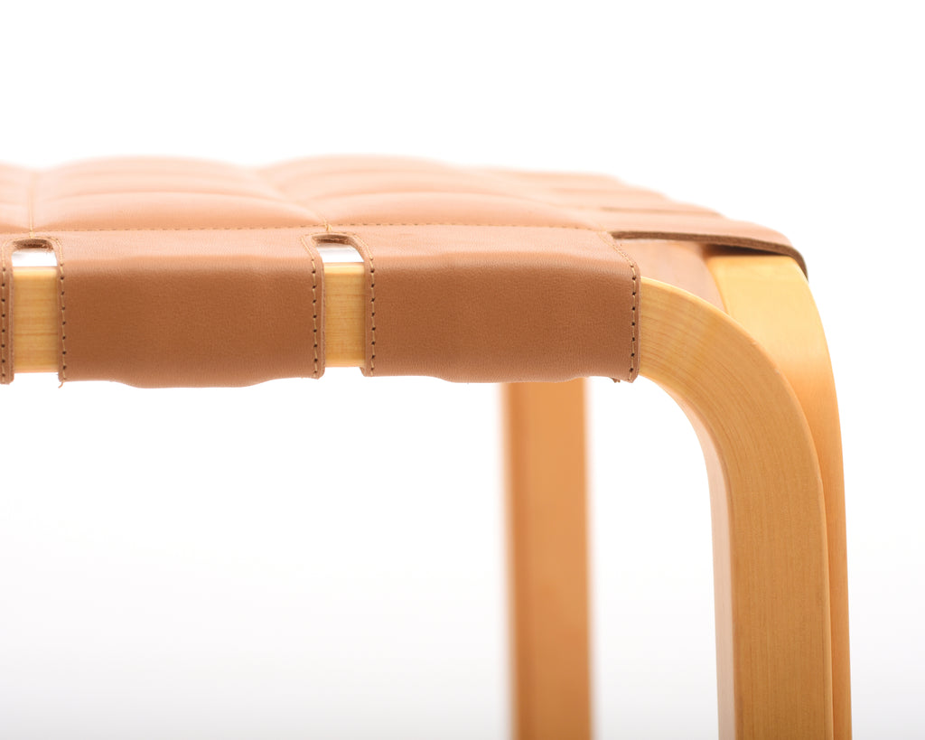 Stool Y61 from the 1990s with new quilted camel-colored leather upholstery.