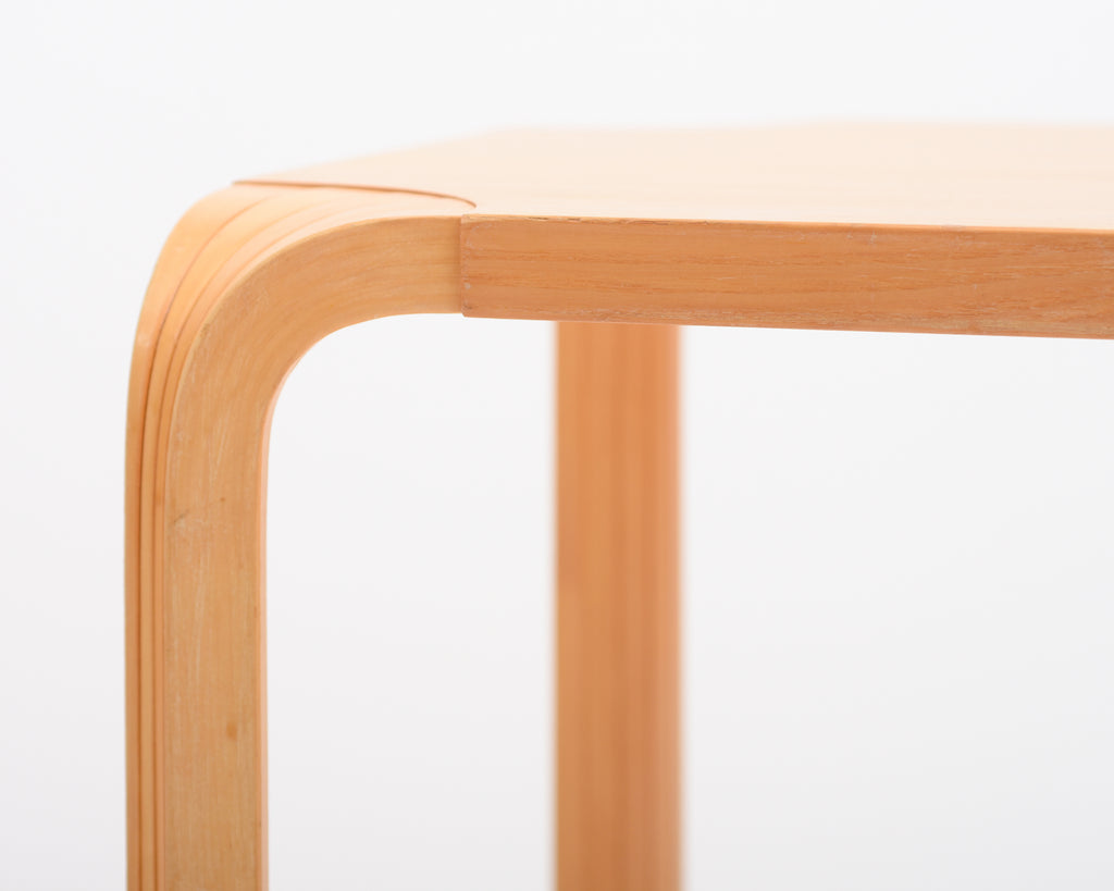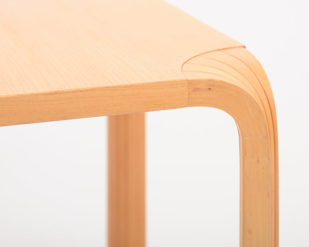 Stool X601 from the 1980s. The stool's surface is ash veneer and the legs are solid birch.